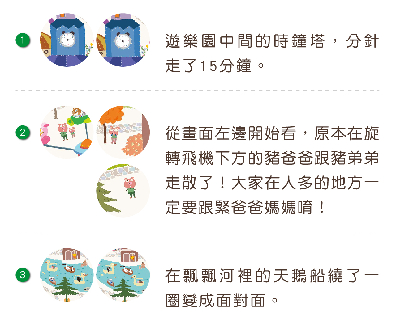 兒童拼圖 : 選用兒童喜愛的童趣畫作及大拼片設計,藉由拼圖訓練孩童的安定、觀察與組織能力。